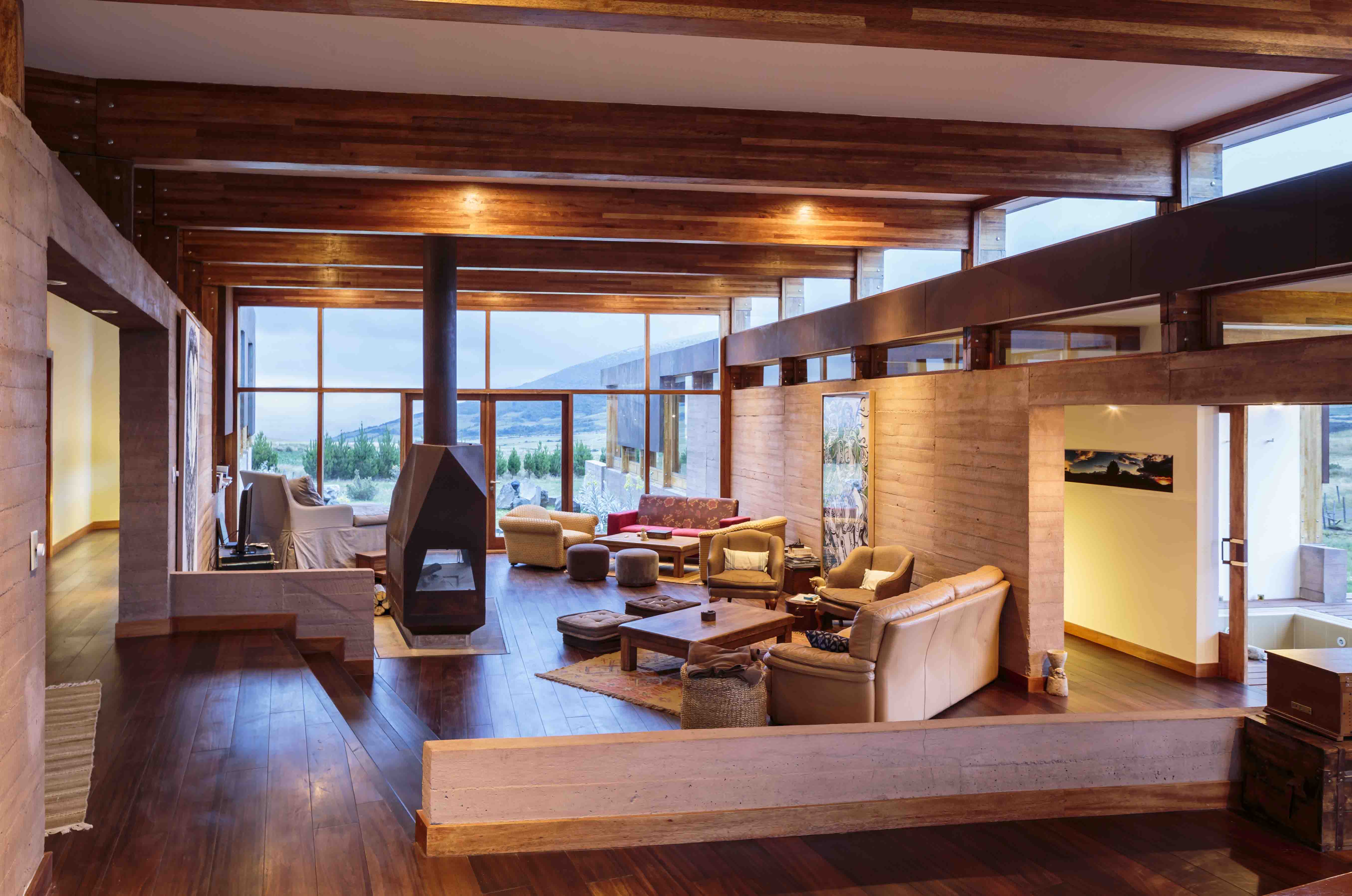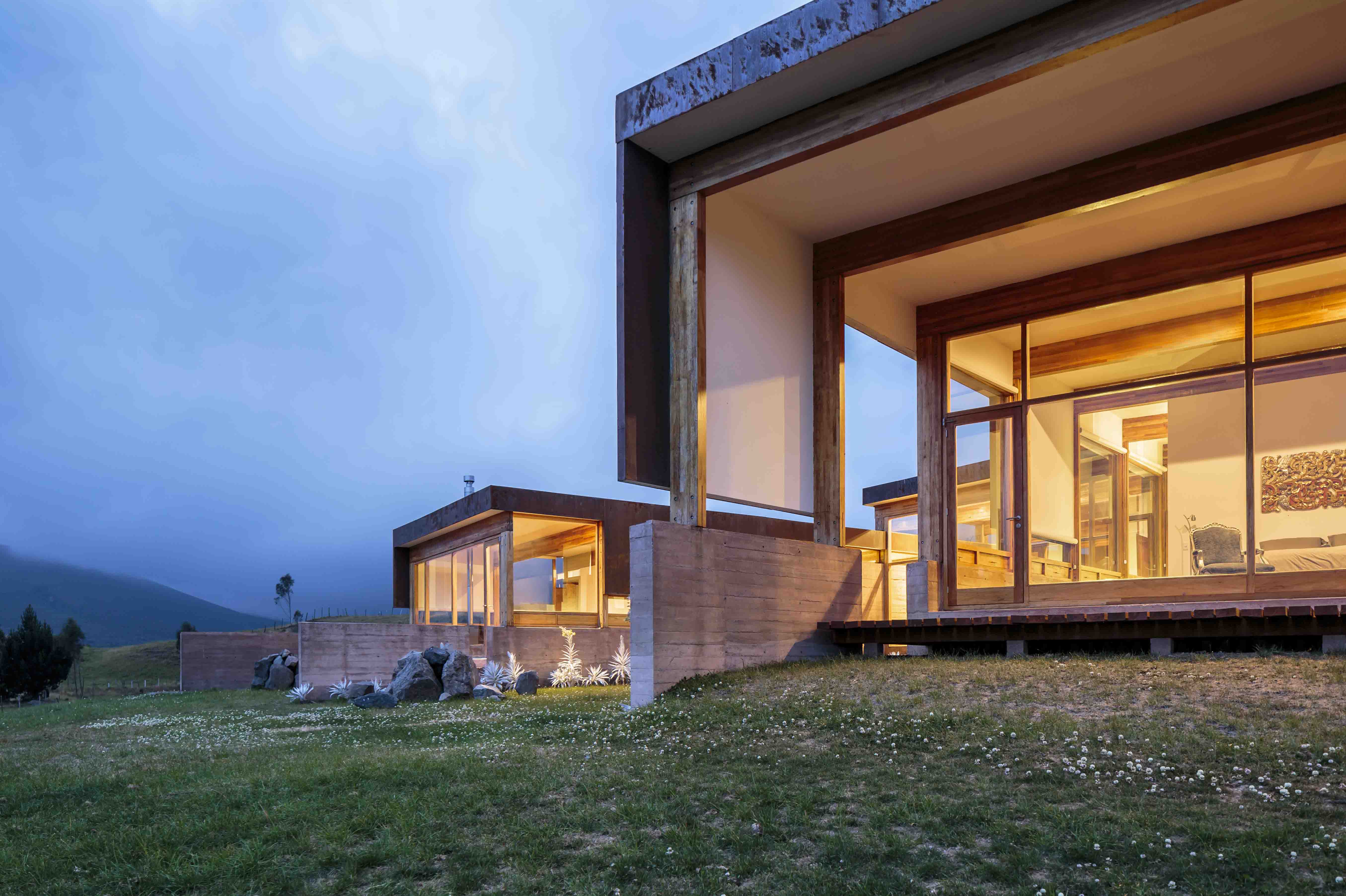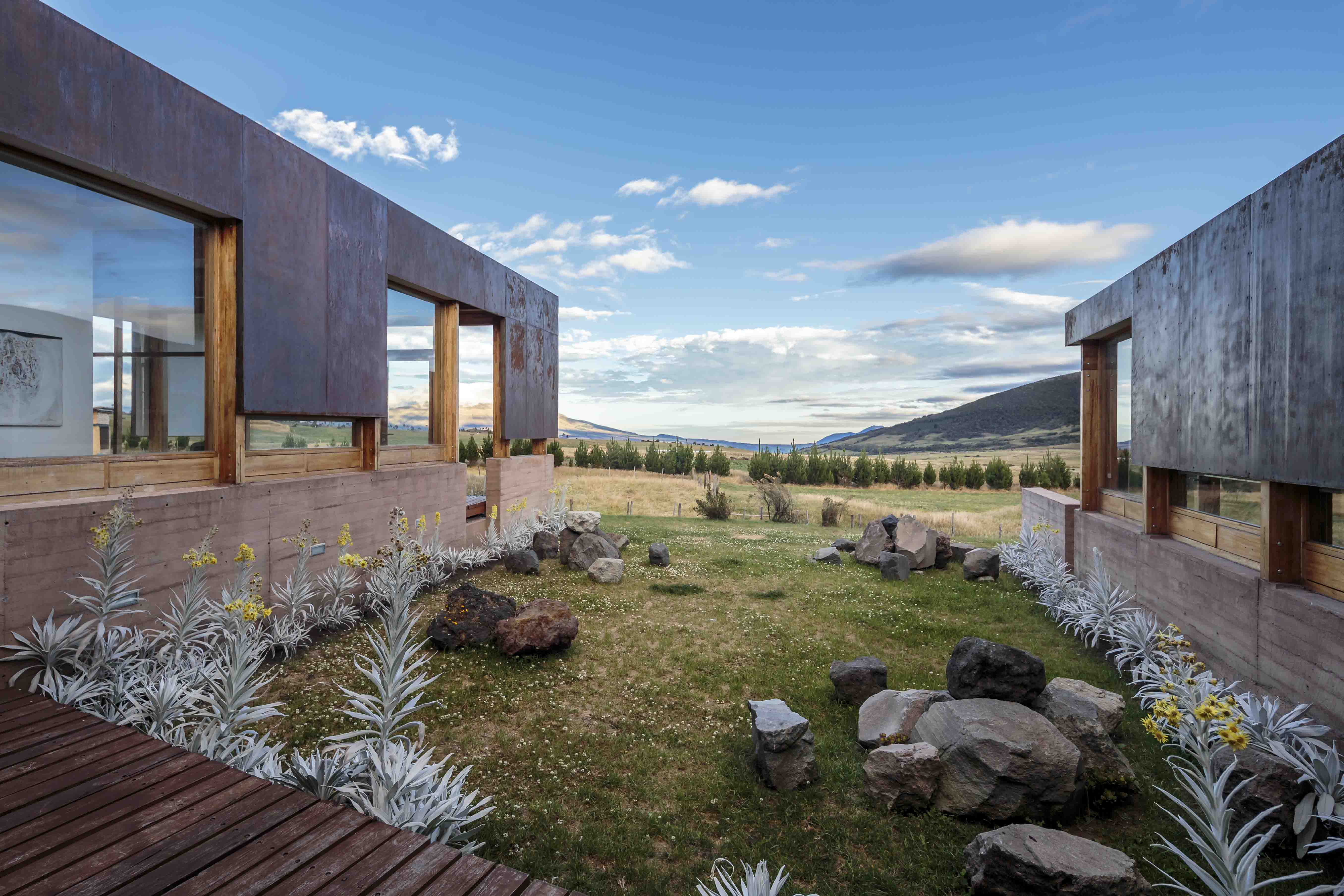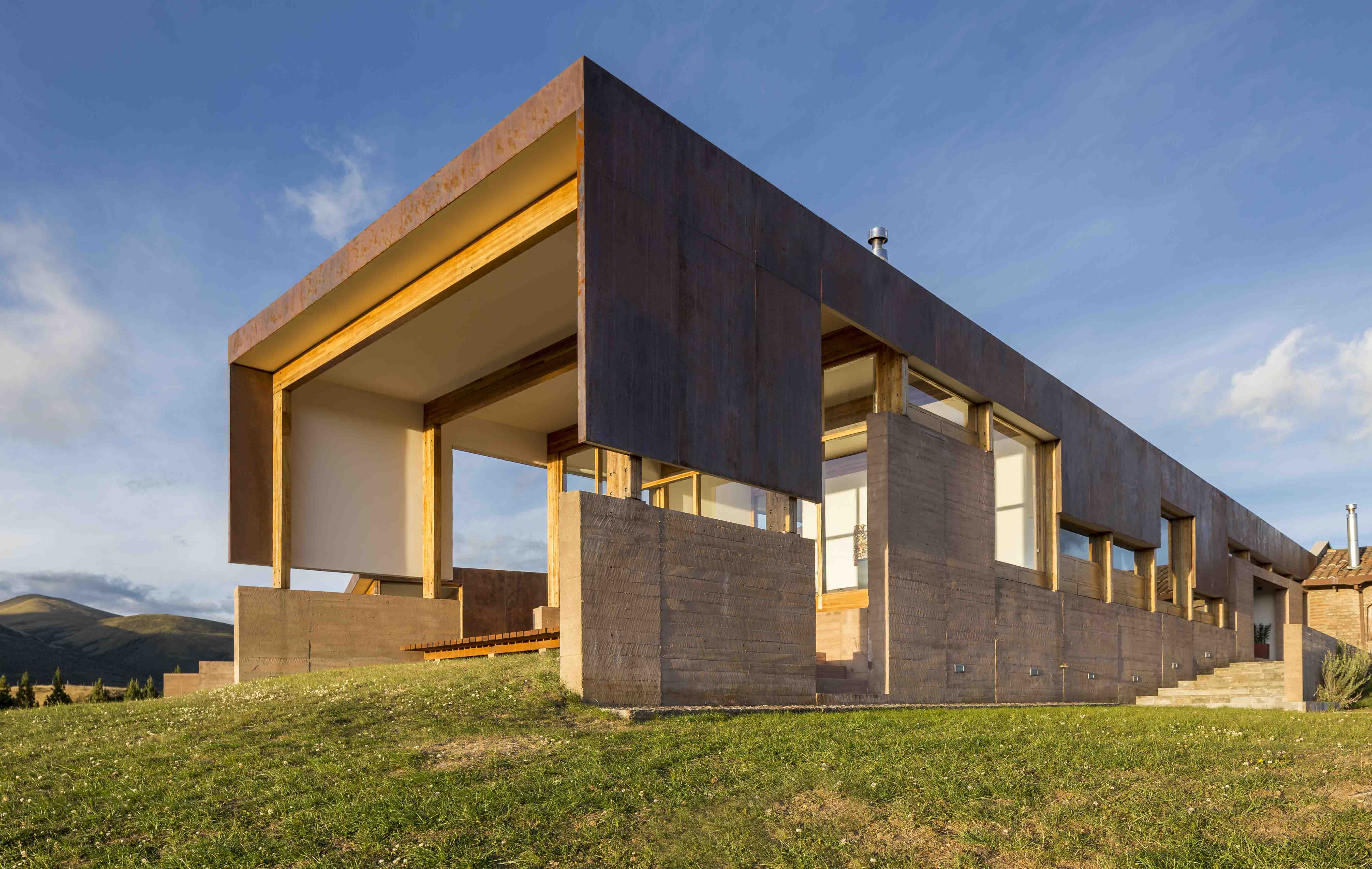 La edificación, que amplía una pequeña estancia existente, permite a sus propietarios compartir con la familia y amigos su afición por el paisaje andino y la crianza de caballos. Parte de la tierra con muros de hormigón visto en color ocre, calados por vanos que permiten disfrutar de vistas extraordinarias para cada uno de los ambientes. Se complementa el exterior de los volúmenes con tabiques verticales recubiertos de acero oxidado, sujetos a una estructura de vigas de madera encolada. Se logra un adecuado confort de temperatura aprovechando la acumulación de calor en los muros y evitando su pérdida con vidrios laminados y tabiques resistentes a los vientos fríos del sector.