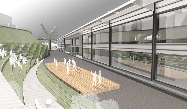 b. Espacios exteriores elevados (Plaza-Terraza): La Plaza-Terraza
