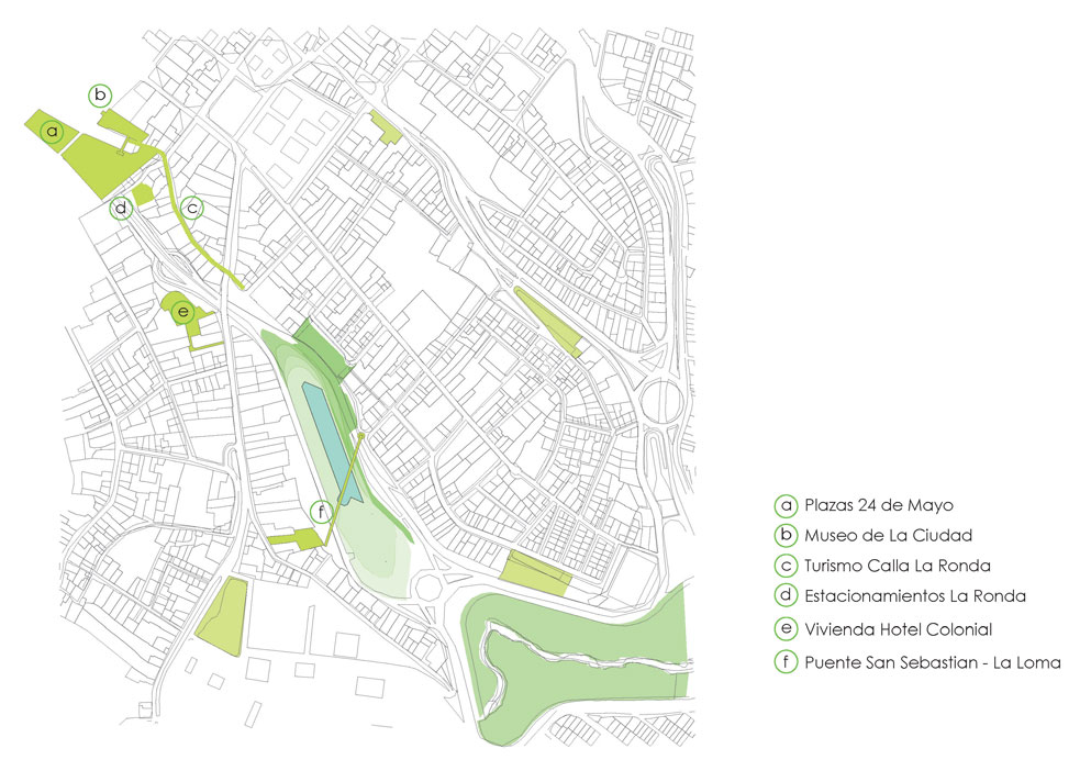 El concepto matriz de la propuesta es la recuperación de la huella de la quebrada de Jerusalén, en su extremo sur, sur-oriental, para generar un nuevo paisaje urbano con un claro mensaje de regeneración ambiental y de dotación de espacios públicos orientados a mejorar la calidad de vida de los habitantes de Quito.